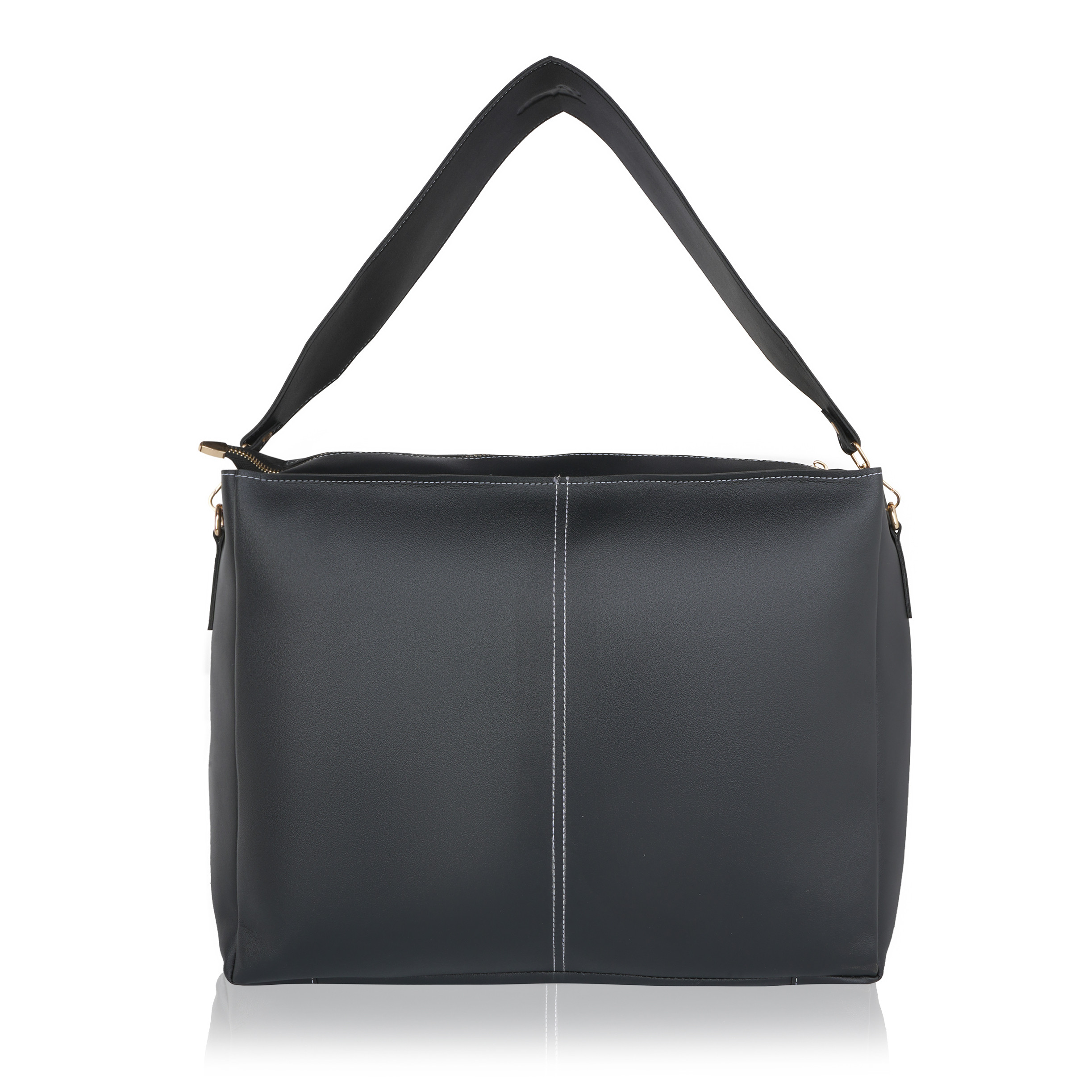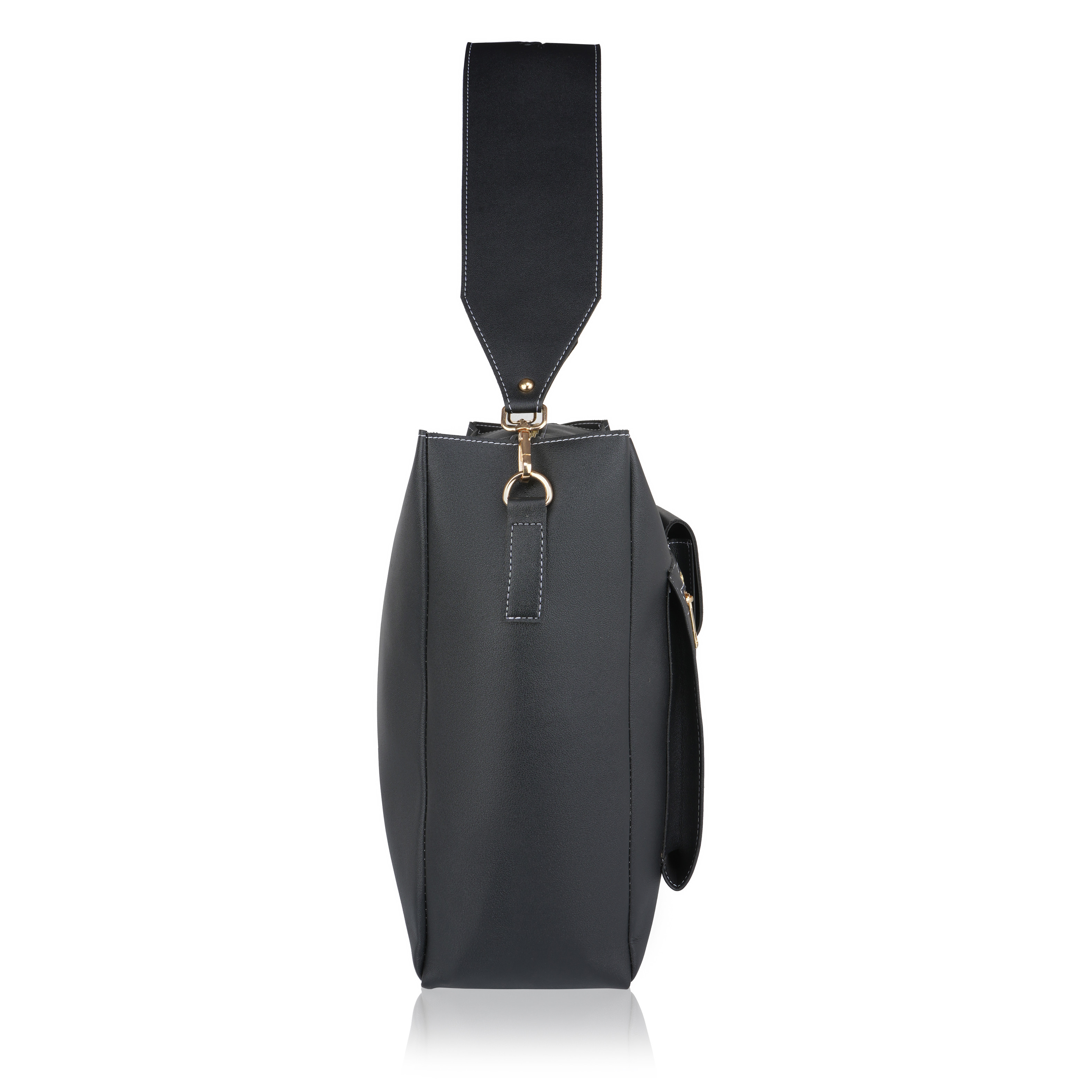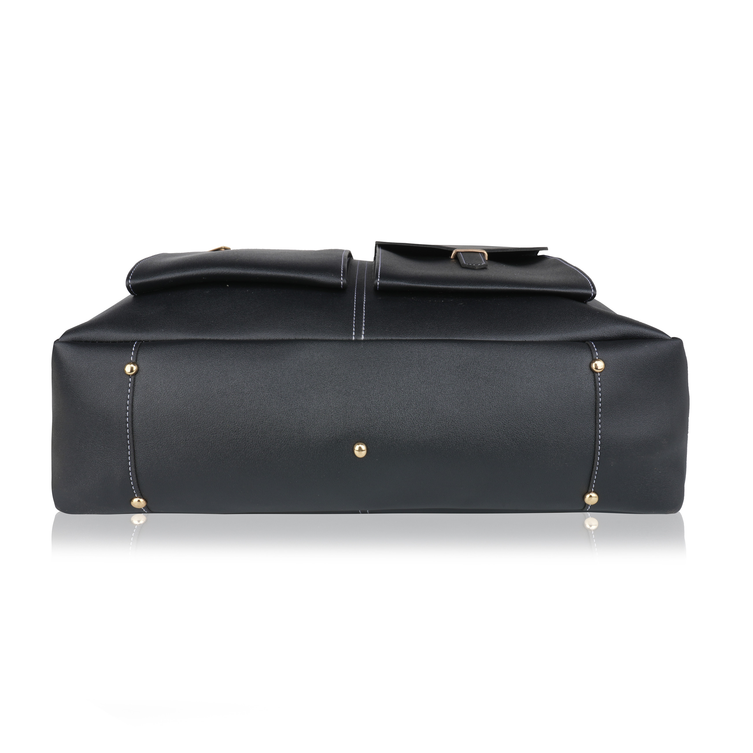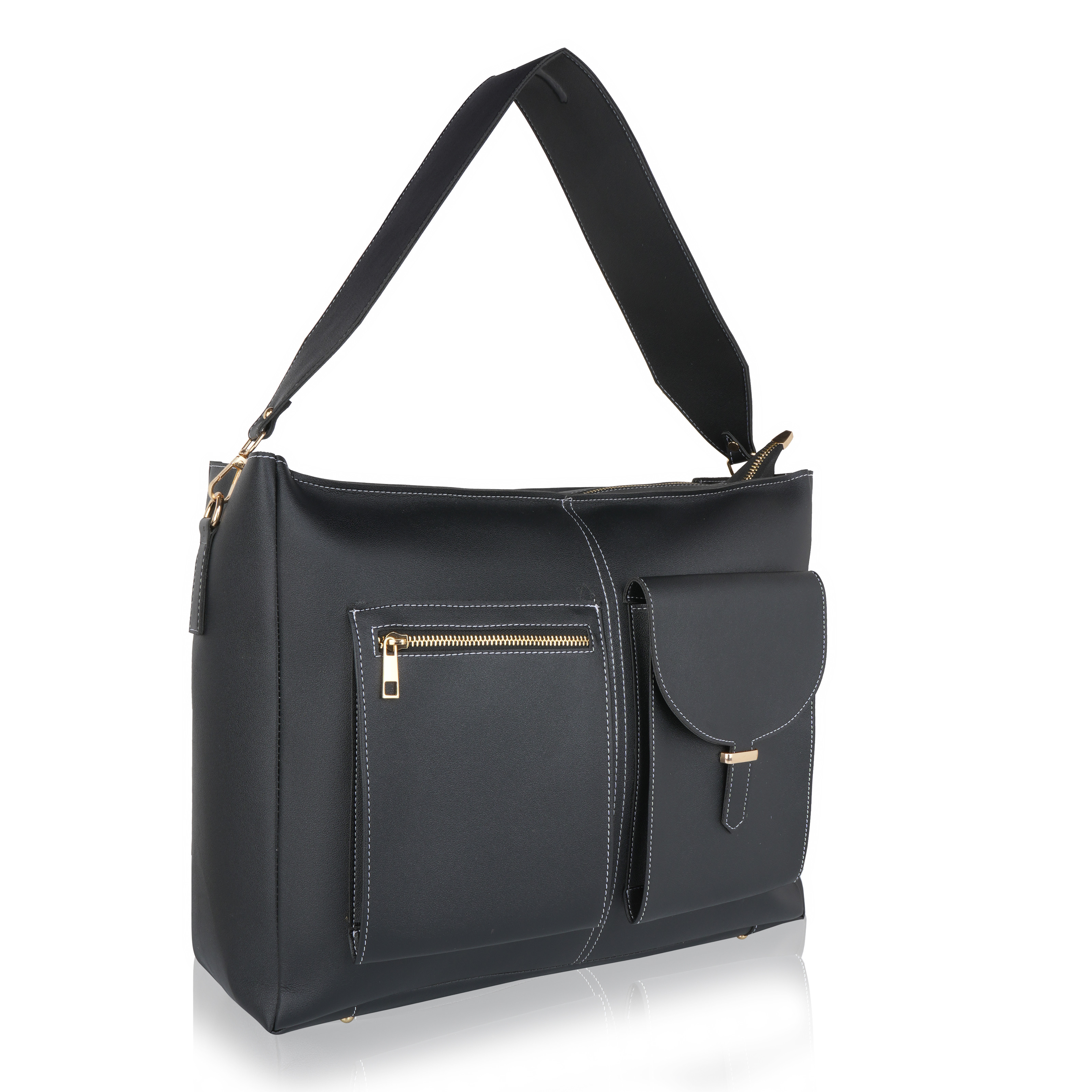 Laqueen Black Women Tote Bag With Front Pockets, Zip Closure And with Detachable Handle Laqueen Tote Bag is sleek and structured tote bag designed for everyday use. Made with a smooth matte finish, it features a secure zip closure and a comfortable shoulder strap for easy carrying. A modern structured tote bag with a front flap pocket and zip closure. Ideal for working ladies, suitable for office, meetings, and daily wear. Crafted for modern working ladies, this tote bag combines a structured look with practical storage, making it perfect for office and everyday use.